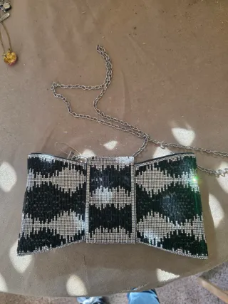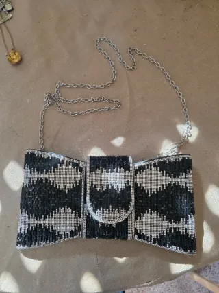 Bolso pajarita negro y plateado