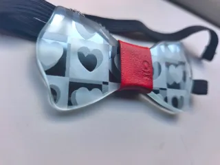 Elegante pajarita con un diseño único de corazones y un detalle central en rojo. - Material: Cristal. - Diseño: Patrón de corazones. - Detalle central: Color rojo. Marca NECKBOWS PRECIO NUEVO 50€