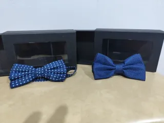 Elegante conjunto de pajaritas de raso. Usadas en una sola ocasión. Compradas en la tienda de trajes del centro comercial el boulevard. - Pajarita azul con lunares blancos. - Pajarita azul lisa con textura.