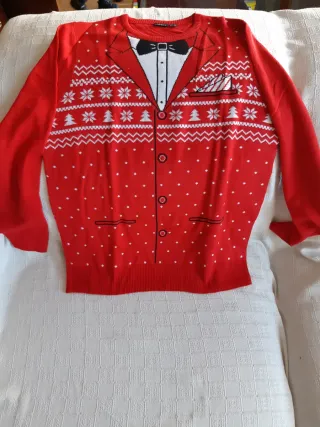 Jersey de Navidad con un diseño divertido que simula un esmoquin. - Estampado de copos de nieve y árboles de Navidad. - Detalles de bolsillo y pajarita. - Cuello redondo y manga larga.