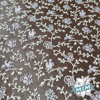 Corte de 1,50 x 1.50 m con dibujo pequeño de los telares de Sedica, modelo “Pajarito blanco” Sedalina con diseño inspirado en el siglo XVIII con fondo en color marrón. El color del tejido puede variar dependiendo de la configuración del dispositivo desde el cual se visualiza y la remesa de tintura. Corte de tela de 1,50 x 1.50 m para jubones y chalecos entre otros. Composición: 40% Algodón, 60% Rayon.