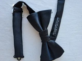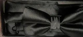 Pajarita negra ideal para fiestas o eventos importantes. Tela brillante y cuello con cierre adaptable. Tengo 2 pajaritas. Cada una 4€.