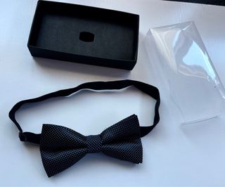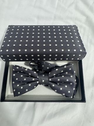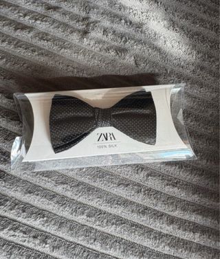 Elegante pajarita de la marca Zara, perfecta para complementar tu atuendo. - Material: 100% Seda. - Diseño con pequeños puntos. - Color: Negro y gris.