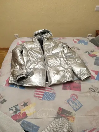 Cazadora brillante plateada