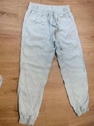 Pantalón de Zara en color azul, con un diseño moderno y cómodo. - Cintura elástica con cordón ajustable. - Bolsillos laterales. - Puños elásticos en los tobillos. Pone talla xs pero yo uso una s y perfecto