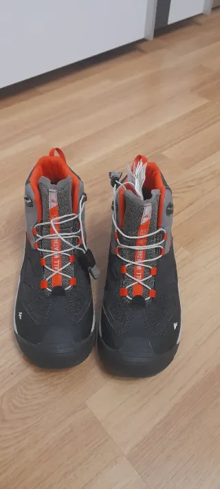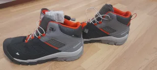 Botas de trekking Quechua en talla 36. Usadas una tarde. Diseñadas para ofrecer comodidad y soporte en tus aventuras al aire libre. - Combinación de colores negro, gris y naranja. - Cierre con cordones para un ajuste seguro. - Caña media para mayor protección del tobillo.