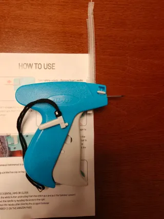 Herramienta para etiquetar ropa de forma rápida y sencilla. - Incluye un paquete de etiquetas. - Fácil de usar para fijar precios o identificar prendas.