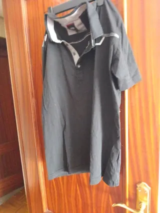 Polo de manga corta en color negro. Presenta un cuello camisero con botones y detalles en contraste. - Cuello con botones. - Diseño moderno.
