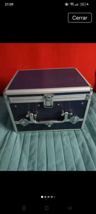 Maletín de maquillaje con un diseño elegante y funcional. Roces propios del uso interior y exterior,pongo fotos de todo. Bandejas desplegables. - Acabado metálico brillante. - Esquinas reforzadas para mayor durabilidad. - Asa superior cromada para un transporte cómodo y pequeñas patas. - Cierres de seguridad plateados y llave. Medidas 21 cm de alto,29 cm ancho y 19 cm fondo. No contiene productos.