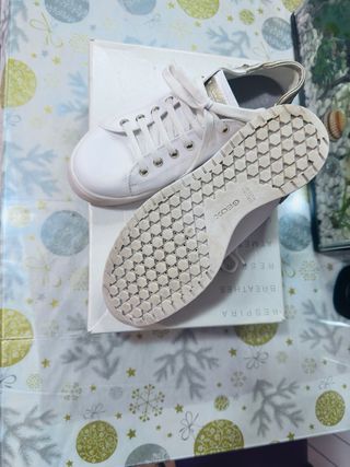 Zapatillas Geox blancas, usadas solo dos veces. Se encuentran en excelente estado. - Cierre con cordones. - Detalle dorado en el talón. - Suela de goma.