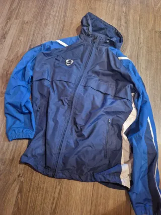 Chaqueta impermeable con un diseño deportivo y moderno. - Cierre completo con cremallera. - Capucha integrada. - Bolsillos laterales con cremallera. - Detalles de diseño en blanco y azul.