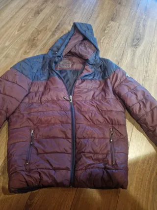 Chaqueta acolchada con diseño moderno y capucha. - Cierre de cremallera frontal. - Dos bolsillos laterales con cremallera. - Mangas y capucha en contraste de color.