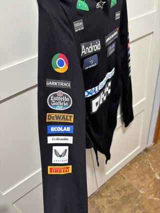 Body de manga larga con diseño inspirado en la Fórmula 1. - Estampado con logos de patrocinadores como Android, Hilton, Dell Technologies, Cisco y Coca-Cola. - Cuello alto. - Diseño ajustado.