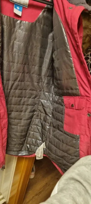 Chaqueta Columbia para mujer en talla S. - tecnologia omniheat que mantiene el calor en el interior. - Cuello con forro de borreguito. - Múltiples bolsillos con cremallera. - Cierre principal de cremallera y botones a presión.