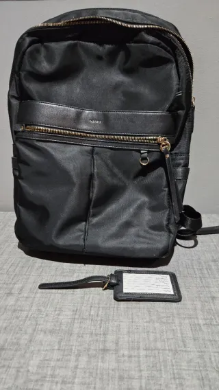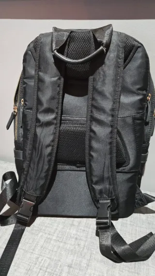 Mochila negra con un diseño moderno y funcional. Cuenta con un compartimento específico para proteger tu portátil. - Compartimento acolchado para portátil. - Múltiples bolsillos para organización. - Cierre de cremallera. - Asa superior y correas ajustables. - Se puede acoplar a maleta fácilmente. (Solo envío)