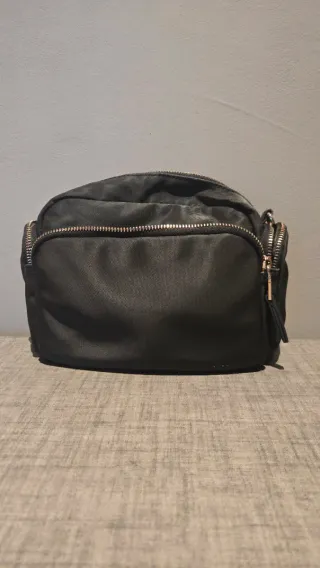 Bolso negro con bolsillos exteriores y uno interior. Con uso de un par de temporadas. Desgaste alrededor de la cremallera como se aprecia en la foto. Lleva la correa negra original y regalo otras dos para darle un estilo diferente. Solo envío