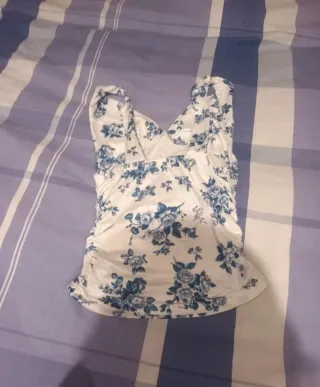 Camiseta de tirantes con un bonito estampado floral. - Diseño con escote pronunciado. - Tejido ligero y con caída. - Detalle fruncido en los laterales.
