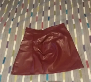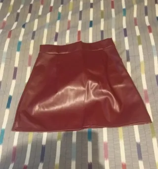 Falda corta de efecto piel en color granate. Tiene un diseño moderno y favorecedor. - Material: efecto piel. - Color: granate