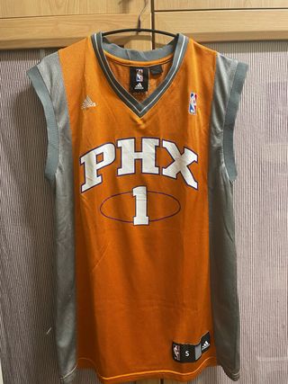 Camiseta de baloncesto de los Phoenix Suns con el número 1 Stoudemire las siglas PHX. - Original - De los 2000’s - Diseño deportivo. - Logo de Adidas. - Jugador Stoudemire - Vintage Camiseta grande. Equivalencias de tallas de países en la foto de la etiqueta.