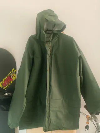 Chubasquero impermeable robusto de color verde. Ideal para protegerse de la lluvia tanto para motos como para trabajo. - Diseño con capucha. - Cierre de botones. - Dos bolsillos frontales.
