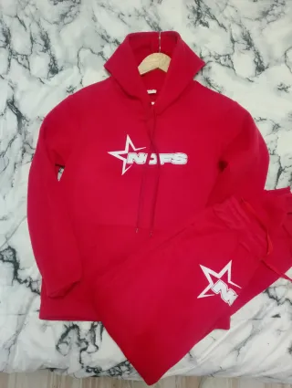 Conjunto deportivo completo de dos piezas. - Sudadera con capucha y cordones. - Pantalón a juego. - Diseño con estrella y logo NJFS.