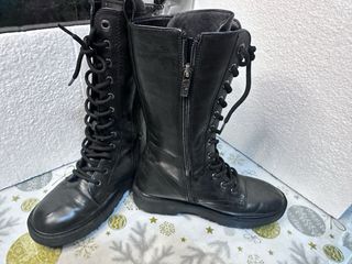 Botas altas de estilo militar. - Cierre de cordones. - Cremallera lateral. - Detalle de logo en la lengüeta. En buen estado , solo tiene un detalle , ligero de costura en la cremallera quien lo pueda arreglar!! . Pero se pueden poner de igual manera , cierran!!