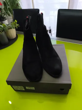 Botines de mujer en ante negro con un detalle decorativo en el lateral. Número ,37 - Material: Ante. - Color: Negro. - Adorno lateral.