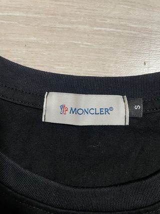 Camiseta de la marca Moncler en color negro y talla S. Presenta un diseño con el logo de la marca en relieve en la parte frontal. - Logo Moncler en relieve.