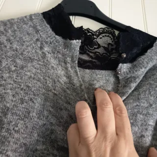 Jersey de punto con un detalle de blonda en el cuello. - Tejido suave y confortable. - Diseño elegante con encaje. - Versátil para diferentes ocasiones.