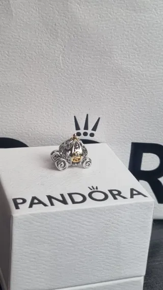 Charm compatible de la colección Disney de Pandora, conmemorativo del 100 aniversario. Representa una carroza con detalles intrincados y un acabado bicolor. - Diseño de carroza. - Detalles en filigrana. - Acabado en plata y oro. *Sin caja