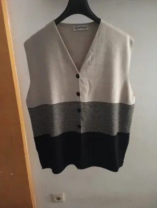Chaleco de punto con diseño de rayas y botones. - Cuello en pico. - Cierre de botones. - Diseño de rayas horizontales.
