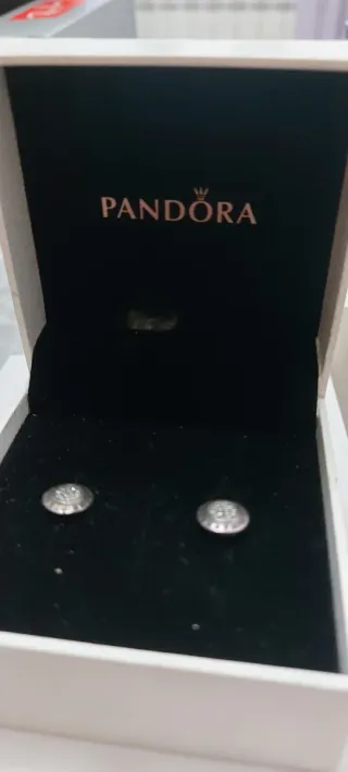 Elegantes pendientes de la marca Pandora. - Diseño circular con detalles. - Acabado plateado.