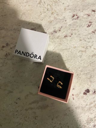 Elegantes pendientes de la marca Pandora. - Diseño moderno y minimalista. - Acabado en tono dorado.