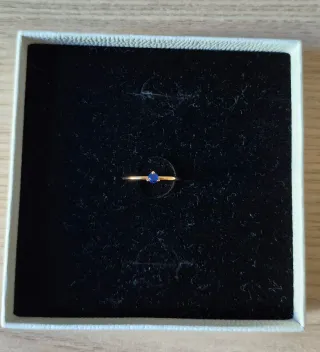 Elegante anillo de la marca Pandora con un diseño delicado. - Piedra central de color azul. - Aro en tono dorado. - Talla 48.