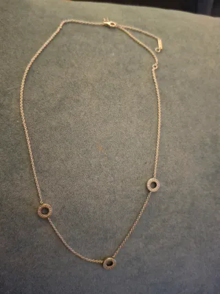 Elegante collar de la marca Pandora. - Diseño con cadena fina. - Adornos circulares con incrustaciones.