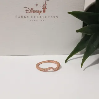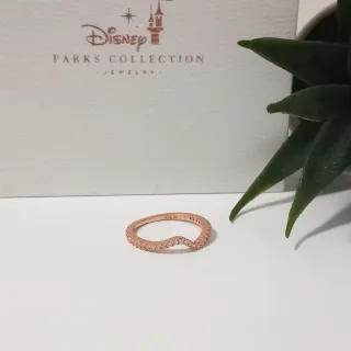 Anillo de la colección Disney Parks de Pandora. - Diseño en forma de V. - Acabado en oro rosa con circonitas.