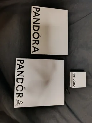 Bolsa y caja vacía para pendientes de Pandora. Ideal para regalar. Los pendientes que aparecen en la fotografía NO se incluyen, se han puesto para que se vea la utilidad de la caja. Entrega en mano en barrio Barajas. También hago envíos.