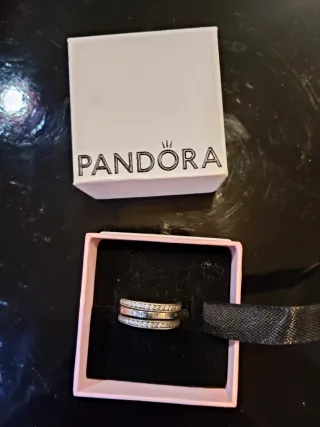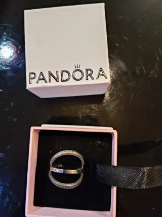 Anillo de la marca Pandora talla 56. - Completamente nuevo, se vende por no ser mi talla. - Viene con su bolsa y un sobre con una tarjeta de Pandora, perfecto para regalar. - Diseño elegante en plata con circonitas y corazones. - Precio original 69€. - Precio no negociable.
