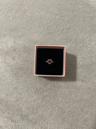 Anillo de Pandora con un diseño de corazón. - Piedra central de color rojo. - Detalles plateados alrededor del corazón. - talla 56
