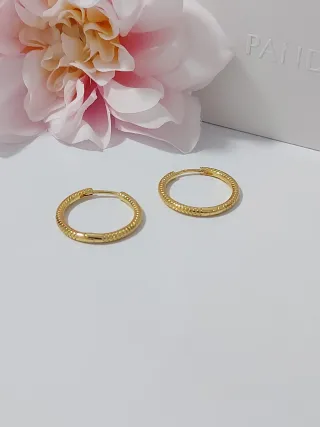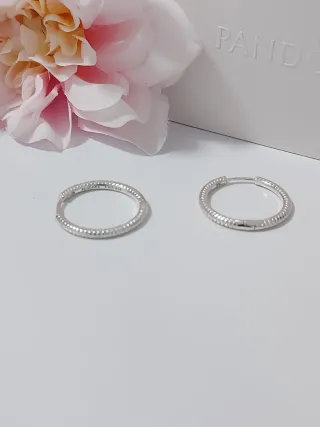 Elegantes pendientes de aro de la marca Pandora. - Diseño circular con textura. - Cierre de clip seguro.