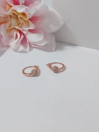 💎 Preciosos pendientes Pandora de plata de ley de aro en pavé bañados en oro rosa. Ver tamaño en las fotos. Con sello de autenticidad Pandora y ALE MET. 💍 Precio por los pendientes. Puedes añadir cajita Pandora por 5€ más o bolsita blanca guardapolvos de Pandora por 3€mas❗ 💌 Hago envíos