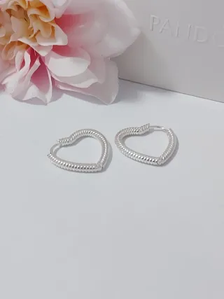 Elegantes pendientes de la marca Pandora con forma de corazón. - Diseño en forma de corazón. - Acabado en plata. - Estilo trenzado.