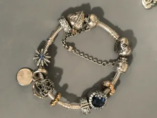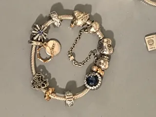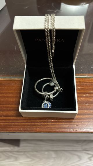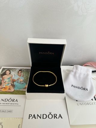 Se venden pulseras Pandora con abalorios, todo es original de Pandora . Para precios dime cuál te gusta Pulsera sola 24€ Charms desde 11€ hasta 15€ cada uno - Diseño de cadena plateada. - Abalorios con detalles en varios colores y formas. - Cierre de seguridad.