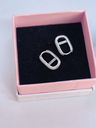Elegantes pendientes de aro de la colección Link de Pandora. - Diseño ovalado con detalles. - Acabado en plata. - se venden unicamente con su caja
