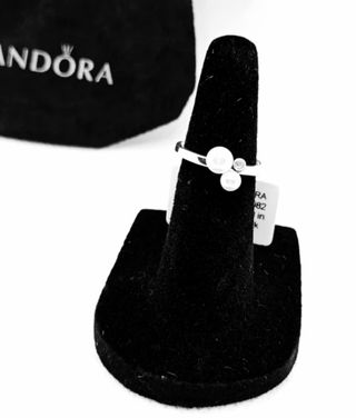 Elegante anillo de la marca Pandora. - Diseño circular con circonitas. - Acabado plateado. -Talla 52