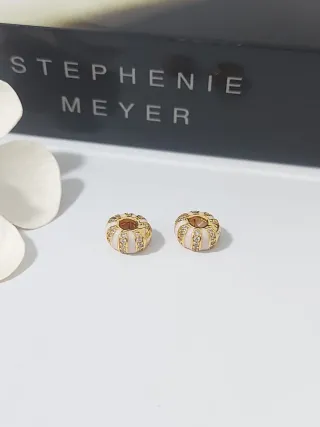 Dos charms de la marca Pandora con un diseño elegante. - Acabado en oro. - Detalles en blanco. - Adornados con pequeñas piedras brillantes.