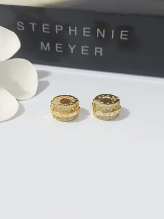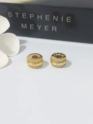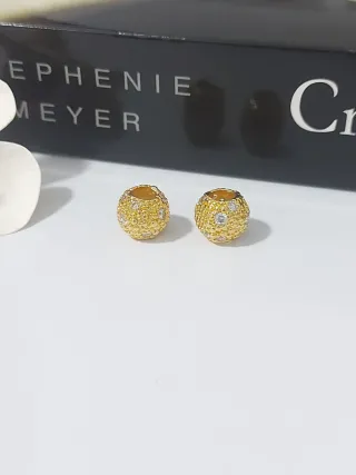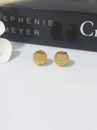 Set de dos charms esféricos con un diseño texturizado y adornados con pequeñas circonitas brillantes. - Diseño esférico. - Acabado dorado. - Incrustaciones de circonitas.