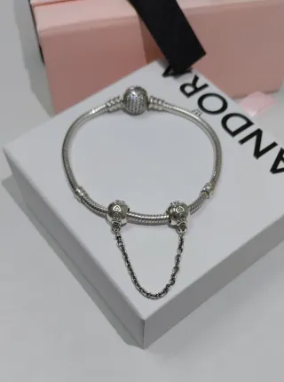 Pulsera de la marca Pandora. - Diseño de cadena. - Cierre de seguridad.
