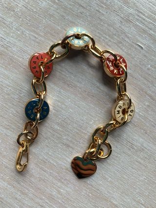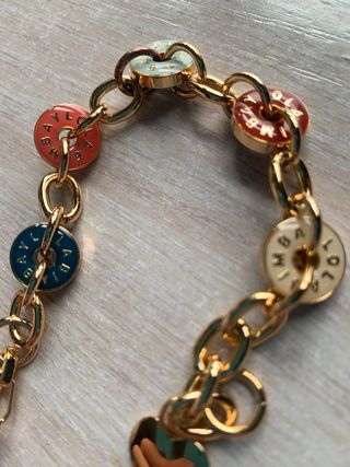 Elegante pulsera de la marca Pandora con un diseño vibrante y detalles dorados. - Diseño con eslabones y medallones. - Medallones con esmalte de colores. - Acabado dorado.
