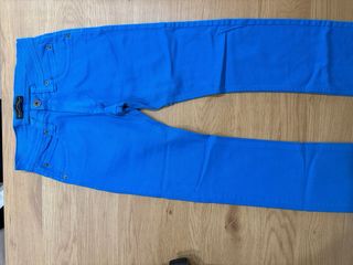 Pantalón de corte moderno y color vibrante. - Diseño de cinco bolsillos. - Etiqueta distintiva en la parte trasera.